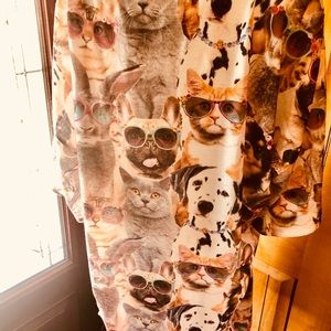 For the dog/cat lover. 🐶🐱 Very comfy Tee-Shirt like fabric, Polyester. As shown.