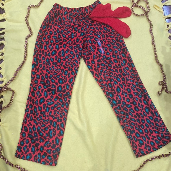 Leopard Pj Bottoms with matching fuzzy socks ❤️💚