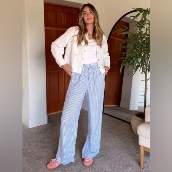 PK Elliot Blue Striped Cotton Casual Pants M Short