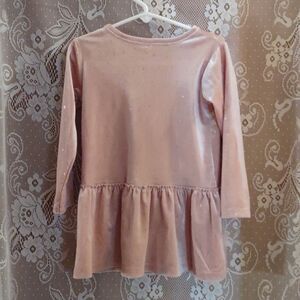 PL Baby size 24 month pullover long sleeve velour top, pale pink, skirted bottom could be worn as a dress or a top, Gold Heart applique and gold metallic fleck pattern, excellent condition perfect for Valentine's Day