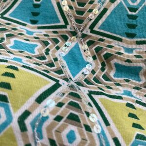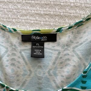 Petite large Style & Co sequined multi-colored tank/shell. Sequins are clear/opalescent and provide nice, subtle shimmer. 100% cotton. This is in excellent used condition with no stains, rips, tears, or pilling. Measurements in photos.