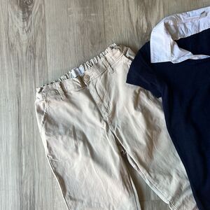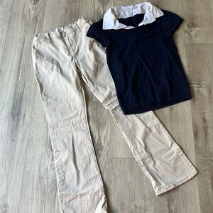 PLACE Children’s Place Khaki Uniform Pants & Navy Blue Collared Top Size XL 14