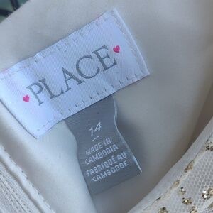 Place Dress Size 14 White/Gold Sequence Zipper in back Lining underneath