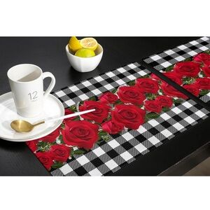 PLACEMATES red roses set of 6 /not slip, washable, heat proof