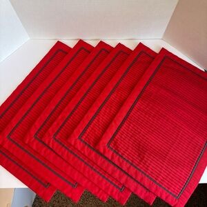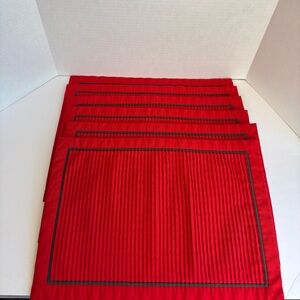 Set of six pleated placemats. Red with green piping in center of each. Excellent condition