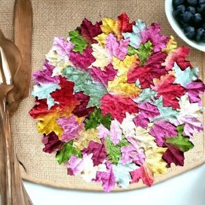 The placemats are made of a durable cotton/ polyester blend material backing, and a combination of VELVETEEN LEAVES on the front