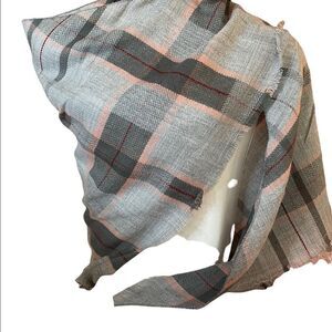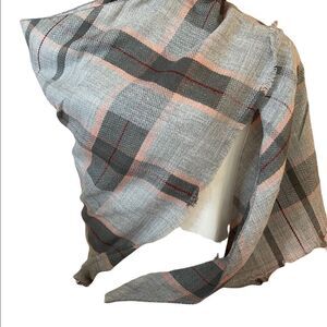 Scarf can be worn over a top, coat, to the side, tied in front, or draped. Measures 82”x55”