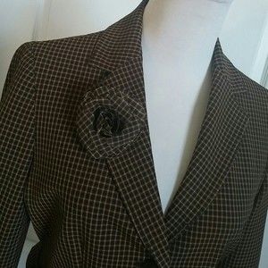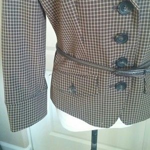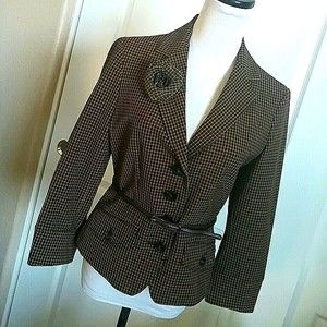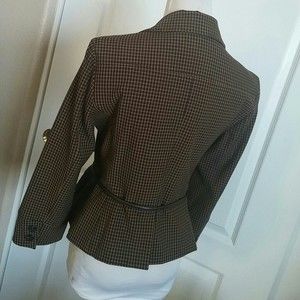 PLAID BLAZER PEPLUM TAILORED FIT BELTED TAN BLACK CAMEL SIZE 4 WOMENS 4