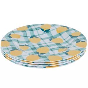 Brighten your dining experience with this melamine lemon-themed salad four piece plate set. Featuring a vibrant yellow and green design, this set adds a fresh touch to any table setting.