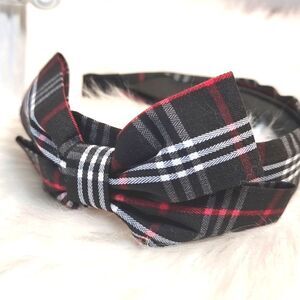PLAID SIDE BOW HEADBAND Black white red fabric