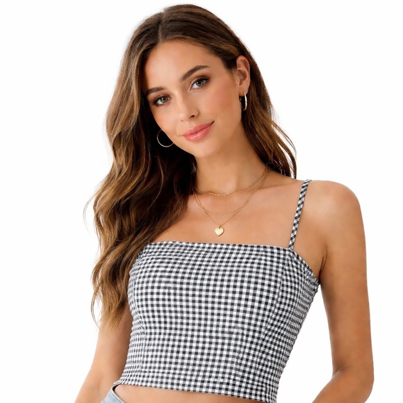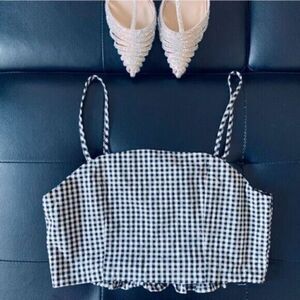 VERA & LUCY Crop Top Plaid Black White Size L