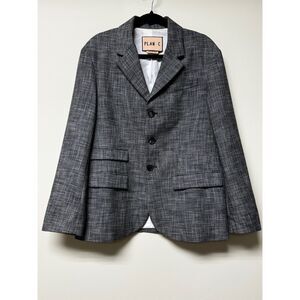 PLAN C Wool/Cotton Three Button Blazer, Melange Blk/Wht, Sz IT 40