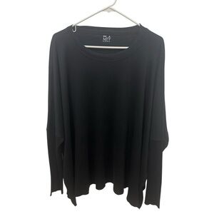 PLANET BY LAUREN G 100% PIMA COTTON RAW CUTLONG SLEEVE BLACK TUNIC TOP OSFM