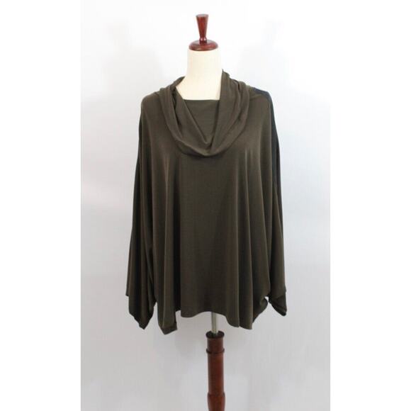 Women's top by PLANET by Lauren Grossman. Size 1. Brown with black stripe down arms. Oversize, dolman sleeve, 96% microfiber, 4% spandex. Good condition, no stains, holes or pilling. Label has a pink stain.