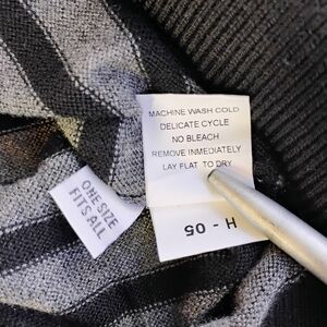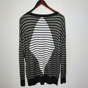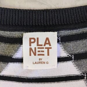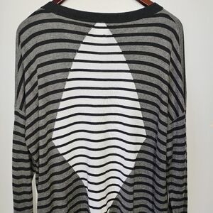 PLANET by Lauren G Sweater Gray Black White Ribbed Hem Stripes One Size