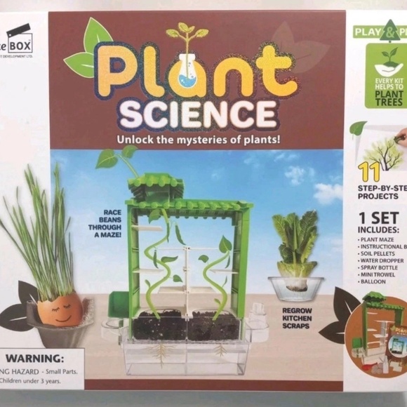 New open box. 1 set includes plant maze, instruction book, soil pellets, water dropper, spray bottle, mini trowel, 2 sponges, tree template, balloon