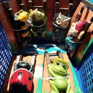 Decorate your windowsills and home with these fun set of 6 flower pot huggers! Each one features a unique brightly colored bee,knome,owl,ladybug, turtle, and they're designed to stay put hanging on to you flower pots.