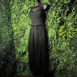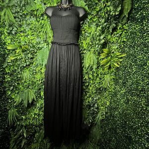 PLASTIC ISLAND Small Black Jumpsuit Wide Leg Sheer Pants Sweetheart Neck 0624