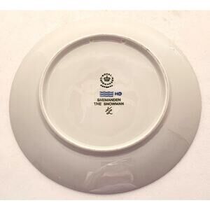 Nice collector plate from Royal Copenhagen. This is a plate in a annual series of 7" diameter blue Christmas Plates. This plate is titled "The Snowman" "1985". It has the name of the scene in English and in Danish. Each plate has the same rim decoration and general style. This plate has two children putting the finishing touches on a snowman. The plate has two holes for hanging on the wall. This plate is made in Denmark and is signed on the back with the Royal Copenhagen mark as well as the artist. This is signed by "KL". I believe this artist is Kai Lange.