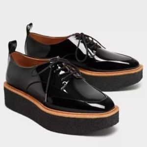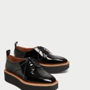Terrific platform shoe by Zara! Pair with a great outfit! Rare Shoe! 40 EUR Sole height 5,0 cm. / 1.9″ Composition UPPER 100% polyurethane LINING 80% polyurethane, 20% polyester SOLE 100% thermoplastic rubber.