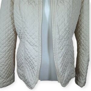 PLATINUM BEIGE QUILTED JACKET SZ.S GUC. GORGEOUS JACKET IN GOOD USED CONDITION. ZIPPER IS BROKEN AS SHOWN IN PIC # 4