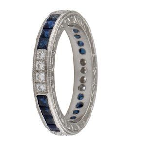 PLATINUM SAPPHIRE & DIAMOND ETERNITY BAND RING