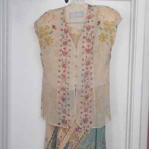 A stunning in mint condition PLATINUM set with long flowing skirt, great artistic jacket and two different shirts...a really beautiful addition to any closet.