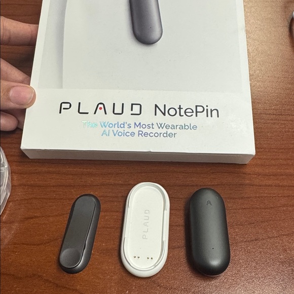 PLAUD NotePin wearable AI voice recorder in black and white. Compact and stylish design. USED ONCE