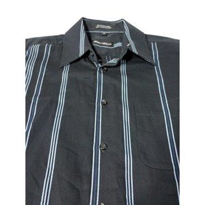 PLAYA GRANDE Button Down Long Sleeve Black Shirt Stripe Blue Size Medium . Very good pre-owned condition.