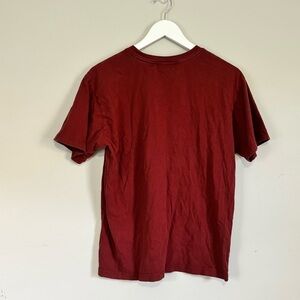 PLAYBOY BY PAC SUN Men’s Maroon Embroidered Playboy Pin Up Tee Short Sleeve Sz S. Good pre-owned condition. Faint spot on front under A. See photos. All measurements are approximate.