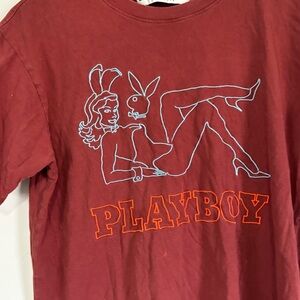 PLAYBOY BY PAC SUN Men’s Maroon Embroidered Playboy Pin Up Tee Short Sleeve Sz S