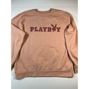 PLAYBOY Logo Front and Back Sweatshirt Crewneck Peach Oversized Women's XL