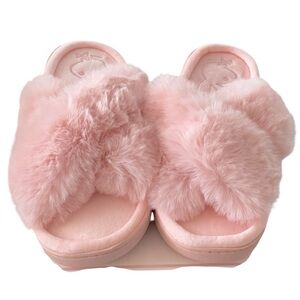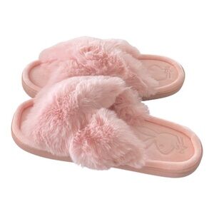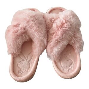 PLAYBOY Pink Fuzzy Open Toe Open Back Slippers Pink Size M NEW