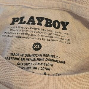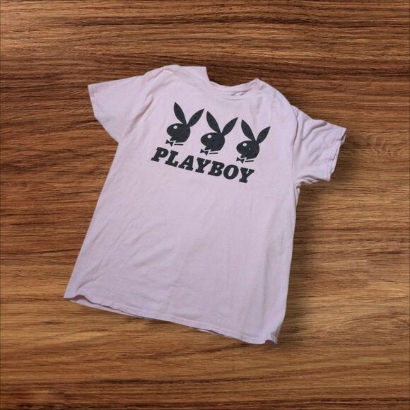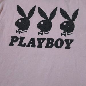 Cute pink tee from PLAYBOY the iconic Playboy bunny logo with some black studs. The graphics and tee have wear from wash but studs attached. Relaxed fit