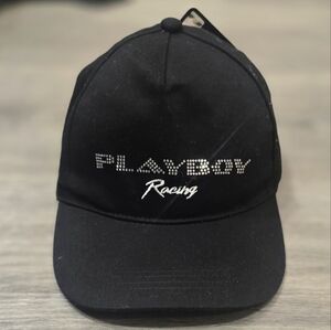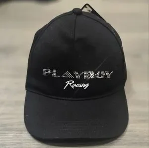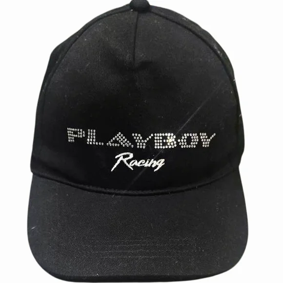 Sleek black cap with iconic Playboy Racing design. Ideal for everyday style.