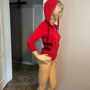 PLAYBOY Vintage Red Hoodie Black Embossed Accents Rare