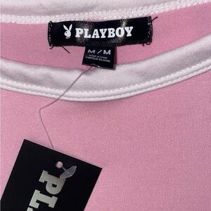 Adorable pink tee with white PLAYBOY bunny logo. Perfect for casual wear.