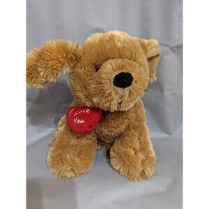 PLAYFUL plush Chrisha Dog brown red hart I love yo 10"