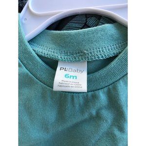 PL:Baby Romper Coverall 2 Pc Set Dark Grey/Teal Dinosaur Design 6M
