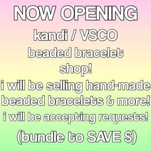 I will be filling up my closet with SUPER CUTE & TRENDY hand-made bead bracelets! Can be CUSTOMIZED to say ANY phrase, word, name, etc. Along with ANY COLOR(S) of your choice!π