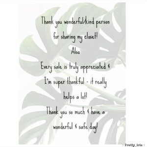 @sweetpeacin You’re so welcome! Thank you for also sharing my closet as well! Happy posh and I wish many sales come your way! 💛🌻🌿🍂