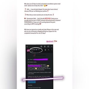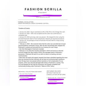 Given the lack of seller protection and repeated failure to honor the stated Poshmark Policies, we do not feel safe conducting business under these conditions. Sales will only resume once all owed payments are received.