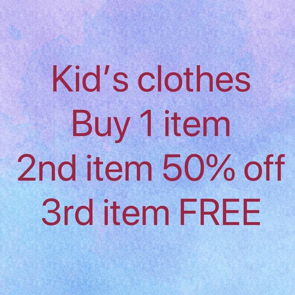 ***PLEASE READ***. Item priced the highest will be the first item that will be added to the promotion and bundle at full listing price,second highest will be deducted 50% OFF the listing price, lowest priced item will be the FREE item. You MUST ADD 3 so the third one can be free. If you don’t add 3 items then it leads me to believe that you’re not interested in a third free item from the kids’s listings. If you have any questions about this promotion please comment on this listing. Thank you