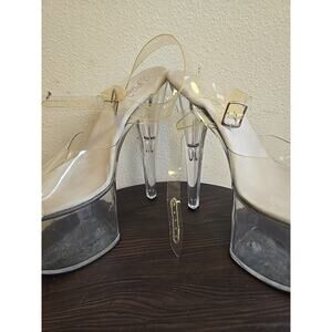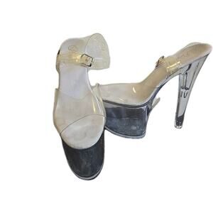 PLEASER FLAMINGO Sz 9 Women's Sexy Clear 8" Heel Platform Ankle Strap Sandal