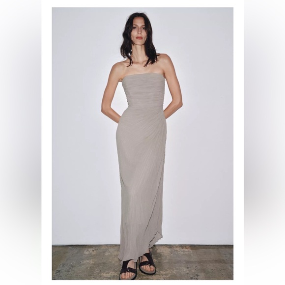 PLEATED STRAPLESS DRESS