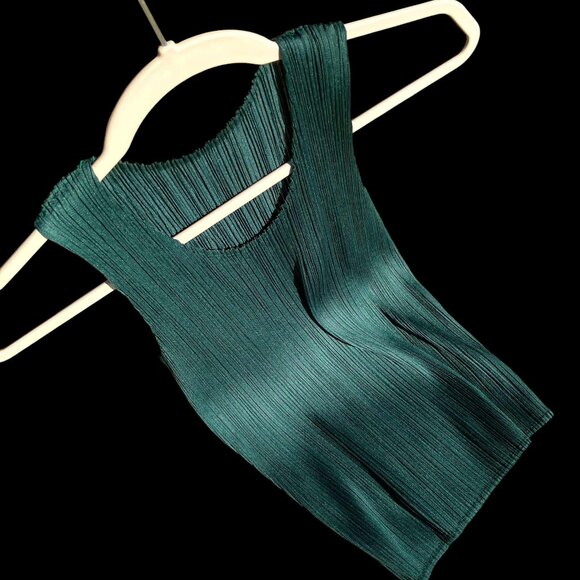 PLEATS PLEASE Issey Miyake Green Sleeveless Round Neck Tank Top Shirt Size 3 M L