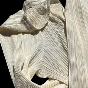 PLEATS PLEASE Issey Miyake Pleated Cream Yellow Ivory Pants Trousers Size 2 M L