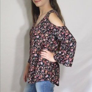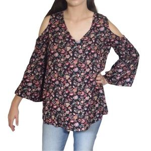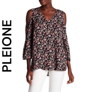 🔴 PLEIONE Bell Sleeve Floral Cold Shoulder Tunic sz Small NEW With Tags