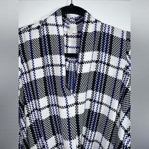 PLEIONE Black & Blue Wrap Style Polka Dot Long Sleeve Snap Blouse Top Size M