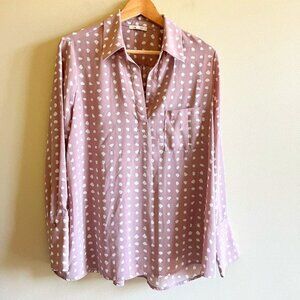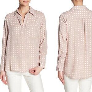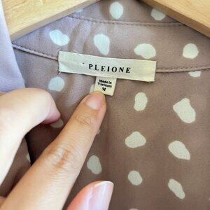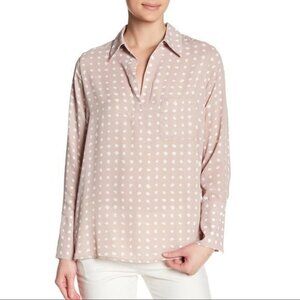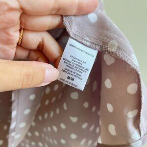 PLEIONE Dot Pleated Back Chiffon Hi-Lo Blouse Blush Ivory Dot Split Neck Size M